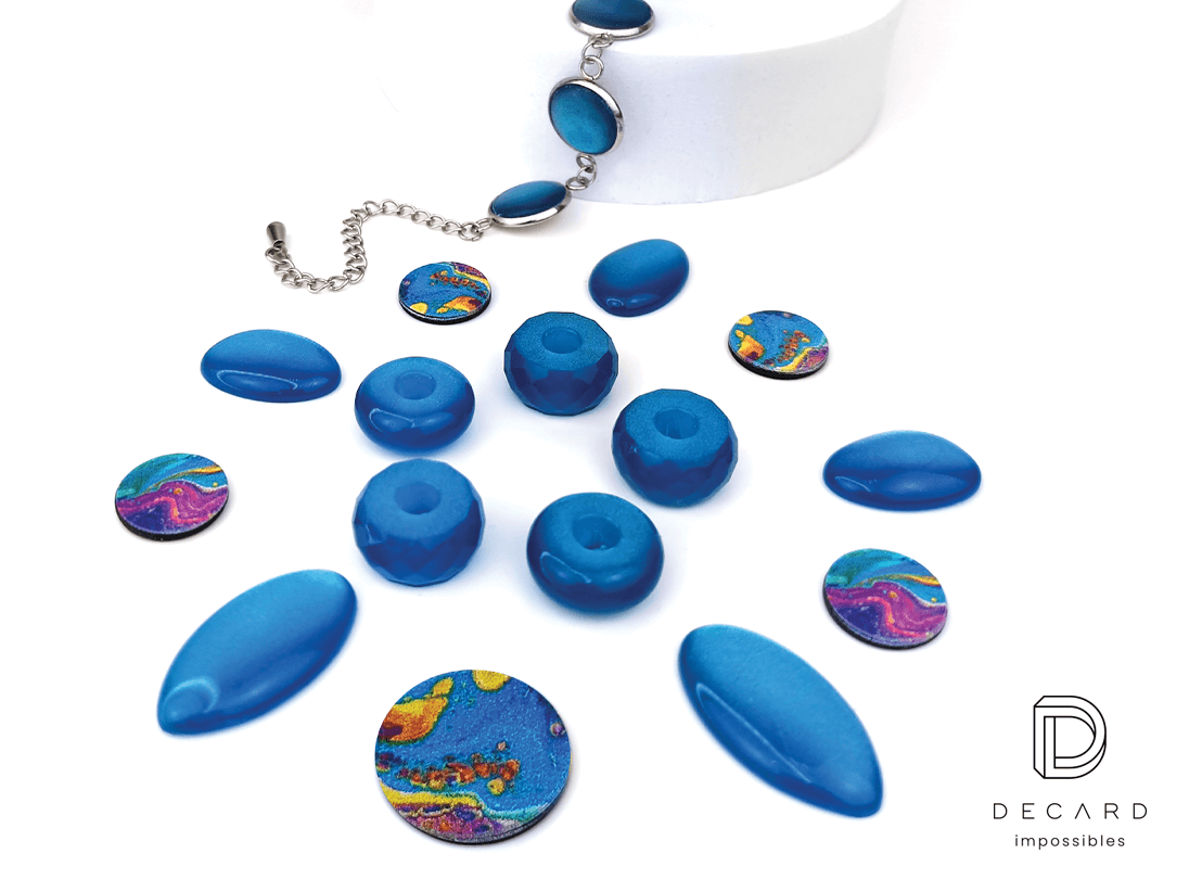 - Nieograniczone możliwości projektowe — realizujemy nawet najbardziej niekonwencjonalne koncepcje, tworząc półfabrykaty do biżuterii o dowolnym kształcie, kolorze i efekcie wizualnym.