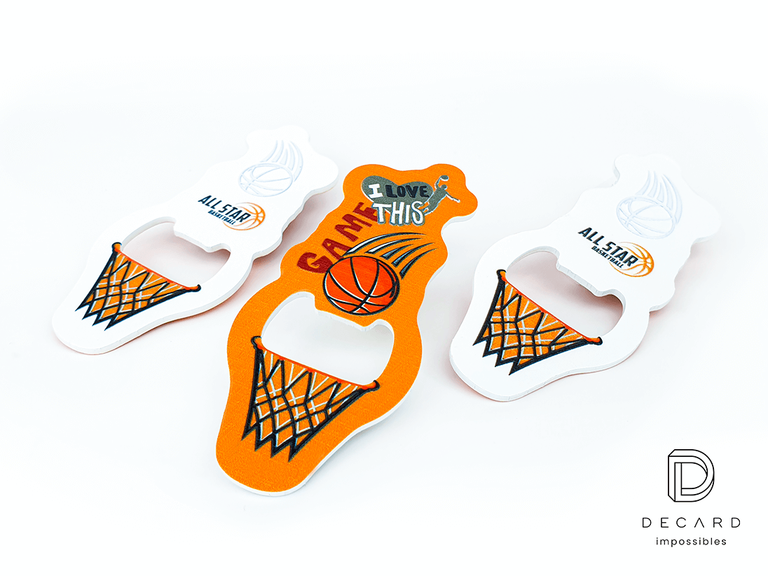 Bottle openers in the shape of miniature basketball baskets that allow you to open bottles in an unusual, sporty way.