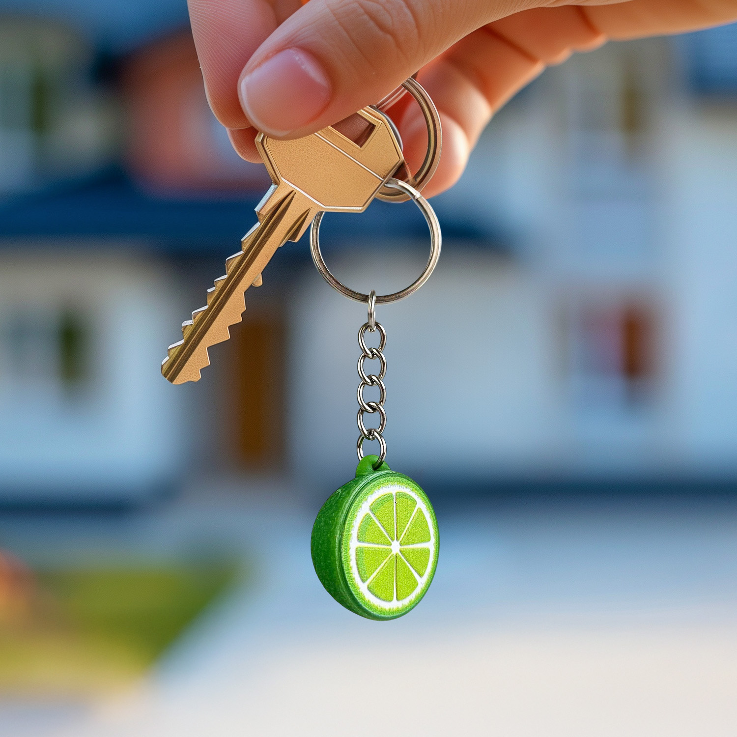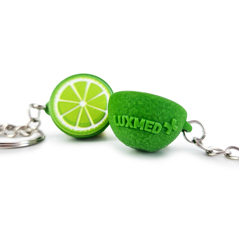 Przestrzenny brelok do kluczy wykonany z twardej, solidnej i jednocześnie lekkiej żywicy, w kształcie połówki limonki. Od góry ozdobiony realistycznym plasterkiem limonki z soczystym, wypukłym miąższem 3D. Brzeg breloka odwzorowuje fakturę skórki owocu, z charakterystyczną teksturą i intensywnym kolorem. Dodatkowo, wzdłuż krawędzi umieszczony został wypukły napis 3D, który dodaje całości prestiżu i przyciąga uwagę detalem.