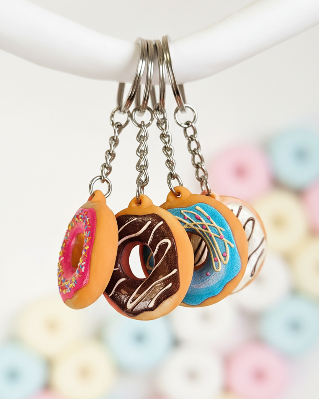 Brelok 3D w kształcie pysznego donuta, wykonany z lekkiej, a jednocześnie trwałej żywicy. Realistyczny kształt i żywe kolory sprawiają, że lukier błyszczy, a posypka przyciąga wzrok w najmniejszych detalach. Każdy element – od delikatnie zaokrąglonych brzegów po wyraźną teksturę słodkiej polewy – został zaprojektowany z myślą o efektownym wyglądzie i przyjemnym dotyku. To kreatywny i atrakcyjny gadżet reklamowy, idealny dla kawiarni, cukierni, branży FMCG oraz marek, które chcą komunikować radość, słodycz i wyjątkowy styl.