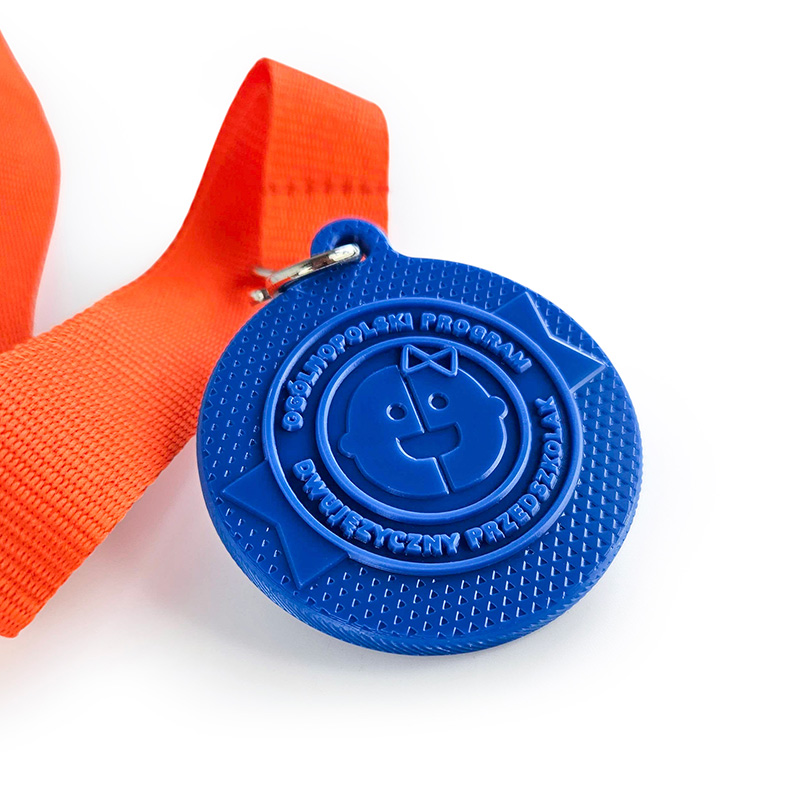Medale możemy personalizować wg Twoich potrzeb – dostępne w dowolnym kształcie, z wyczuwalną strukturą 3D, indywidualną grafiką i pełną paletą kolorów. Przestrzenne napisy lub dowolne znakowanie na krawędzi produktu. Tył medalu w wybranym kolorze żywicy, ze znakowaniem 3D. Zawieszka: smycz w wybranym kolorze.