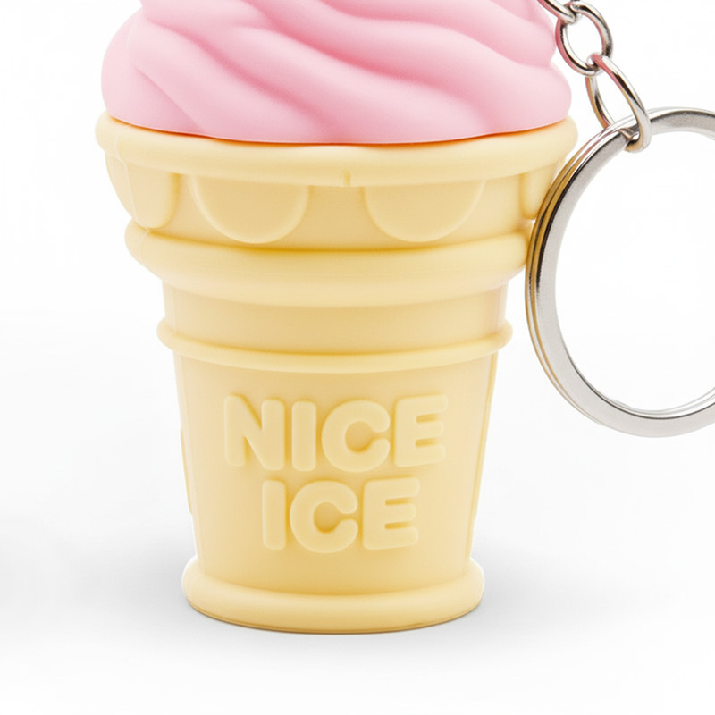 Pendrive w pełnym 3D w kształcie lodów w rożku, wykonany z twardej i lekkiej żywicy. Delikatnie skręcona, różowa porcja lodów pełni funkcję zatyczki, idealnie dopasowanej do korpusu z tłoczonym napisem NICE ICE. Realistyczne detale rożka i miękkie linie lodowej tekstury nadają gadżetowi wyjątkowo apetyczny, przyciągający wzrok wygląd. To kreatywny i efektowny pendrive reklamowy dla lodziarni, kawiarni, branży FMCG oraz marek, które chcą komunikować świeżość, lekkość i przyjemność.